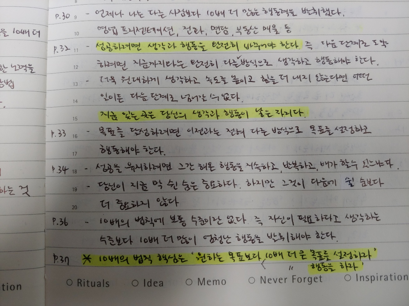 저자의 10배의 법칙 핵심은 명료합니다.