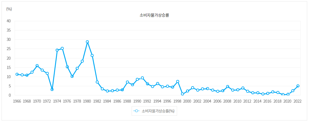 | 소비자물가상승률(%) | 1.0 | 1.9 | 1.5 | 0.4 | 0.5 | 2.5 | 5.1 | ||