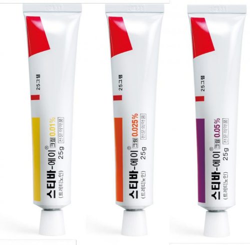스티바A크림은 트레티노인(Tretinoin) 성분 함량에 3가지로 구분됩니다.