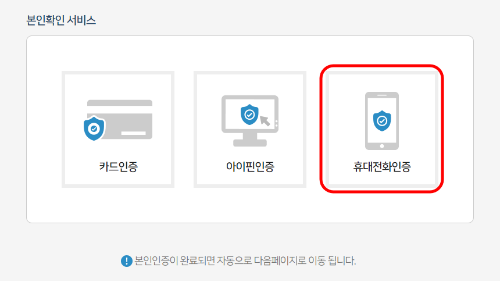 6. 휴대전화인증(편하신 인증방법으로 선택)