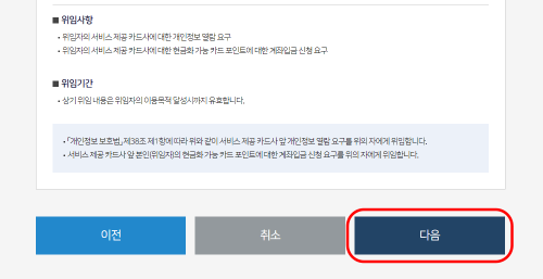 7. 위임 동의 체크하고 다음