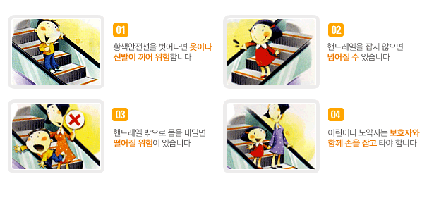 - 에스컬레이터에서는 걷거나 뛰지 말아 주세요.