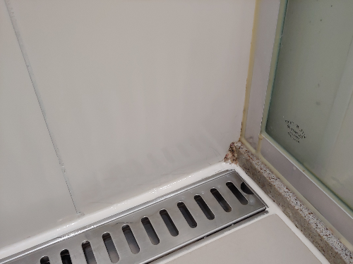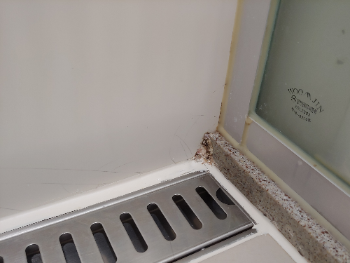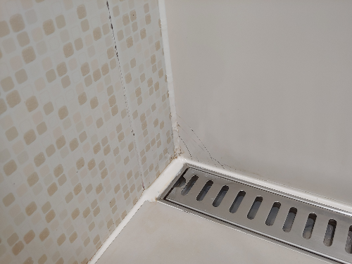 바로 안방 화장실 샤워부스 내 배수구 쪽 금 간 타일이였는데요.