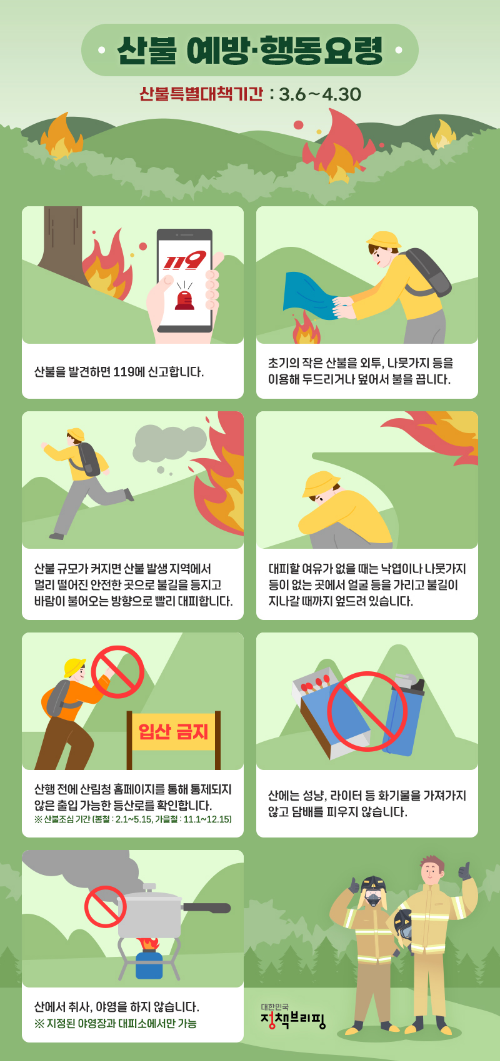 ● 최근 건조한 날씨로 인한 산불이 예상됨에 따라 산림청에서 '산불특별대책기간'을 지정하여 총력 대응