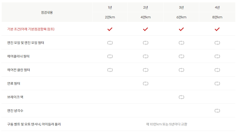 또한 르노코리아자동차의 차량 점검주기를 첨부하오니 참고하시면 되겠습니다